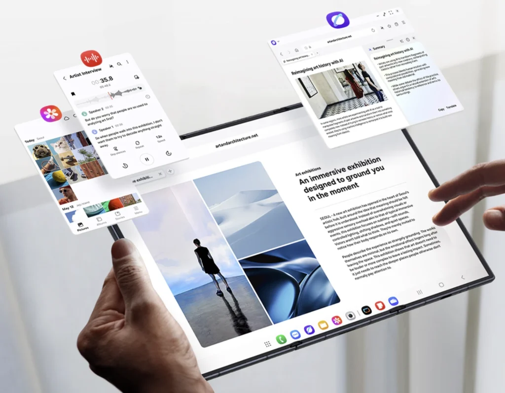 Dla filmowców i fotografów oznacza to na przykład Lightrooma, galerię i komunikator w jednym widoku. Dla montażystów mobilnych: oś czasu, podgląd i panel efektów bez ciągłego przełączania. Samsung dorzuca do tego pełny tryb DeX działający bez zewnętrznego monitora, więc TriFold zamienia się w mini-laptopa.